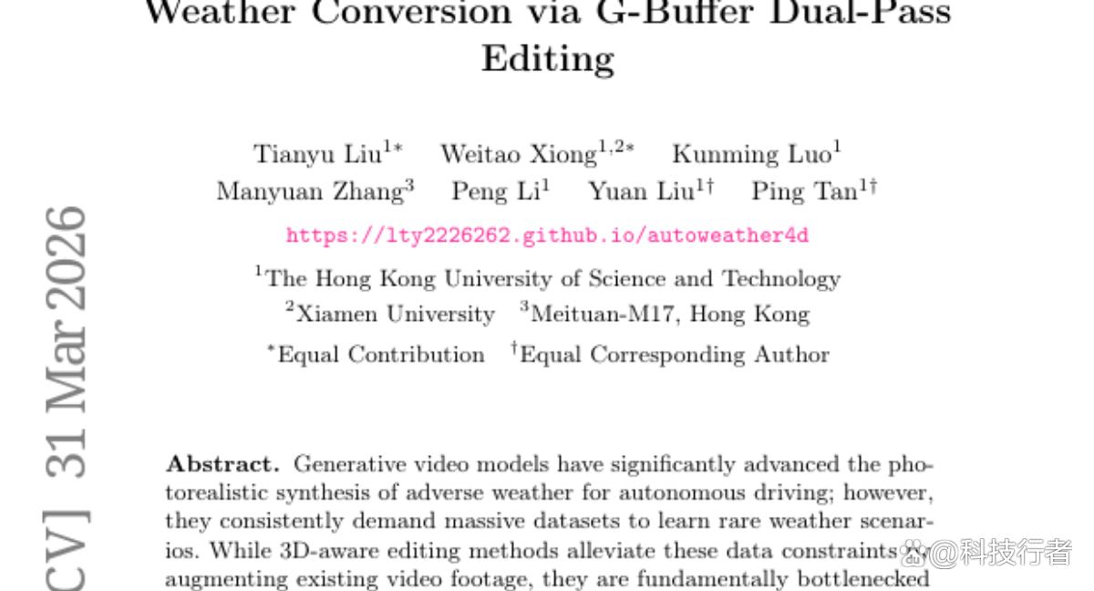 当你在雨夜开车时,雨滴敲打挡风玻璃,雾气遮挡视线,路面反射着车灯的光芒——这些恶劣天气条件对人类司机来说已经够困难了,对于正在学习驾驶的人工智能来说更是巨大的挑战。这项由香港科技大学、厦门大学和美团联合完成的突破性研究,于2026年3月发表在计算机视觉顶级会议上,论文编号为arXiv:2603.26546v2,为这个难题带来了创新性的解决方案。