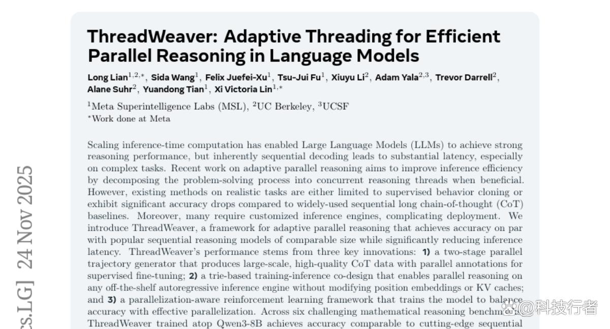 想象一下这样的场景:你面对一道复杂的数学题,传统的解题方式是按步骤一个接一个地计算,就像走楼梯一样只能一级一级往上爬。但如果你能同时思考多个不同的解题路径,比如一边计算主要公式,一边验证中间结果,一边检查边界条件,最后将这些并行思考的结果汇总起来,整个解题过程会快很多。这正是Meta研究团队在人工智能领域实现的突破——他们开发了一个名为ThreadWeaver的系统,让AI模型能够进行"并行推理",在保持准确性的同时显著提升思考速度。