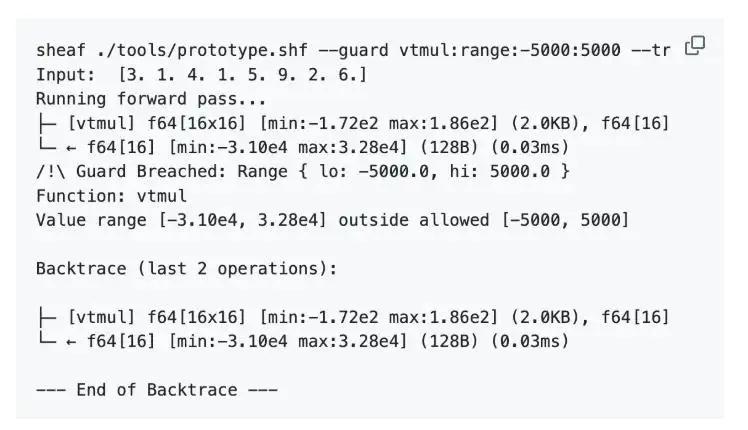 在正式转向汇编实现之前,必须先验证其正确性。因此,开发者先在 Sheaf 中对浮点和定点算术进行了原型设计与验证。Sheaf 是开发者开发的一个函数式 ML 框架,内置了可观测性机制。