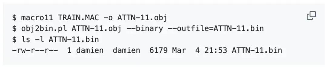 构建所需的两个条件是:MACRO11 汇编器,以及用于将目标代码转换为可加载二进制文件的 obj2bin 工具。