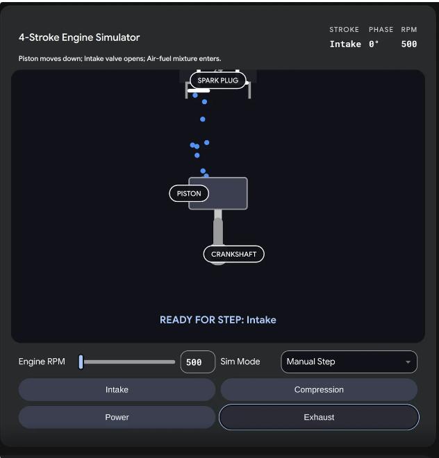 在实际测试中,该功能展现了极强的信息承载力。例如,在演示“月球绕地运行”时,用户可通过滑块实时调节轨道速度并变换观测视角;而在“汽车引擎工作原理”的可视化中,用户不仅能更改动画播放逻辑,还能手动拆解、调整视图以观察每一个机械步骤。相比传统单张图片,这种交互式模拟能更直观地解构复杂逻辑与物理过程。
