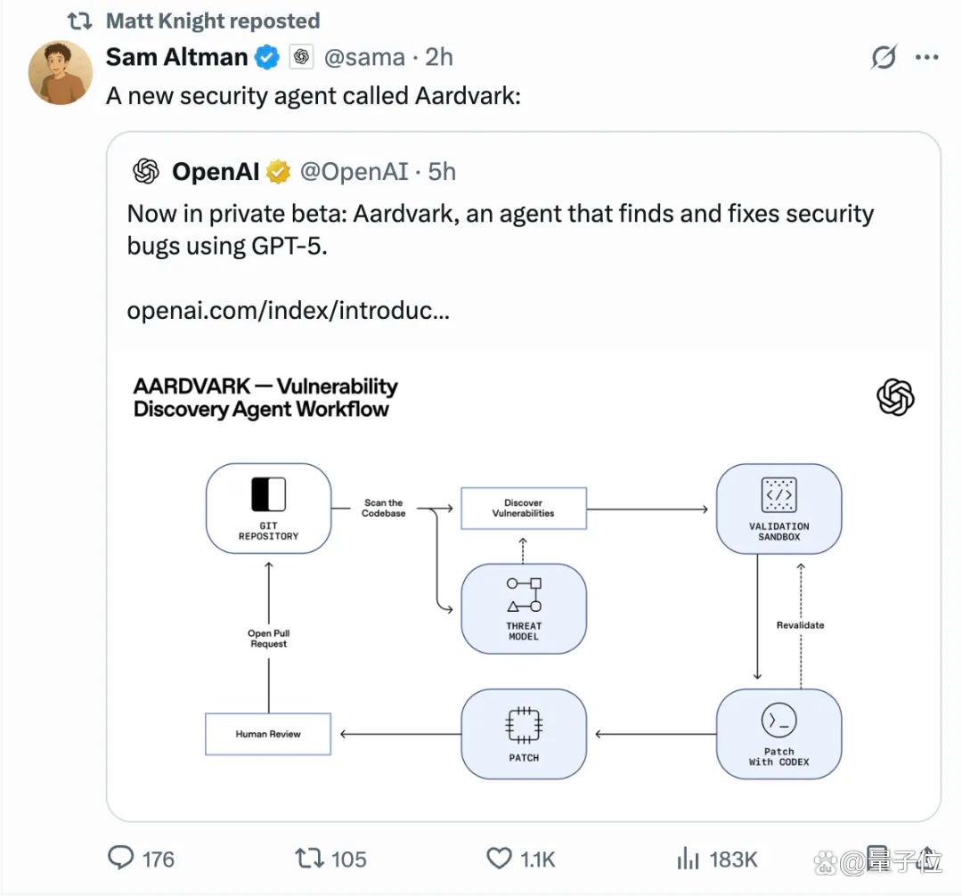 刚刚,OpenAI发布由GPT-5驱动的“白帽”Agent——Aardvark(土豚)。