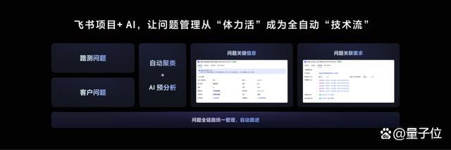 现在,Momenta可以一键批量导入开发需求,耗时从半天缩短到10分钟。完成开发进行路测验证时,安全员一键上传问题到云端,飞书项目会自动创建问题清单,然后根据场景自动聚类问题,接着AI预分析原因,帮问题对应的研发人员减轻负担。