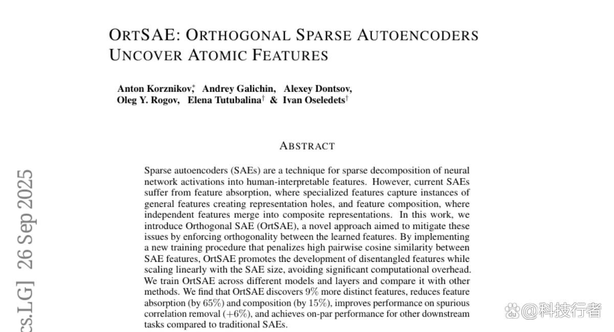 为了解决这些问题,研究团队开发了一种全新的方法,他们称之为"正交稀疏自编码器"(OrtSAE)。这个名字听起来很学术,但其核心思想非常简单:确保AI大脑中的不同"神经元"尽可能独立工作,就像乐队中的每个乐器都有自己独特的声部,而不是所有乐器都演奏同样的旋律。